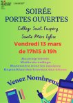 Les portes ouvertes du collège auront lieu le vendredi 13 mars de 17h15 à 19h00. Venez nombreux !