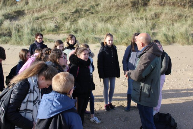 Dans le cadre du projet littoral, « notre littoral demain », en collaboration avec le PNR, les élèves du collège sont allés découvrir un milieu de vie : l’estran. Ils ont pu découvrir ainsi la richesse de la faune et de la flore de ce milieu et comprendre la formation des dunes et la fragilité de ces dernières dans un contexte de réchauffement climatique. Puis les élèves sont allés enquêter dans une carrière pour connaître le paysage de Fresville il y a 200 millions d’années et y découvrir que la côte Est du Cotentin était autrefois située sous la mer.